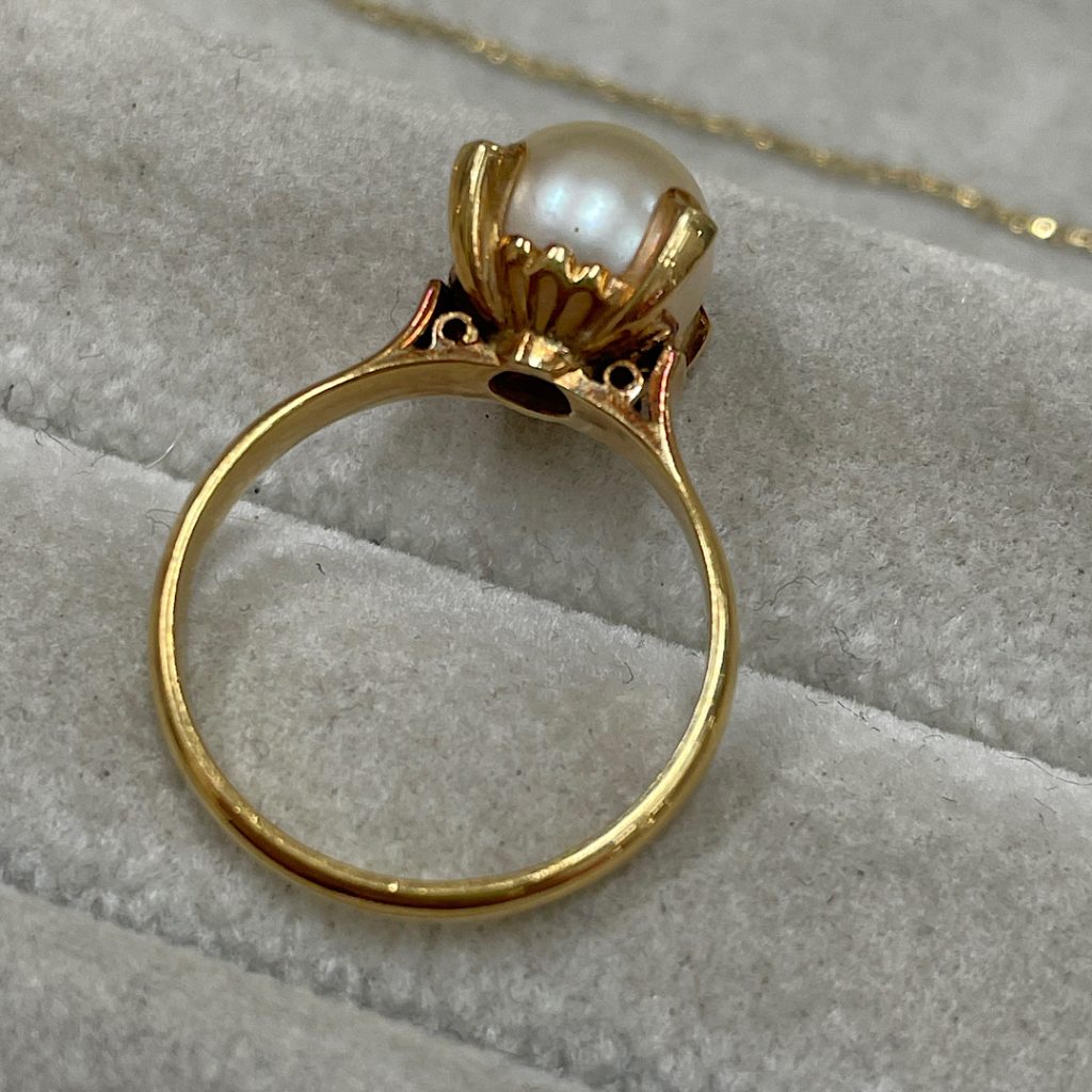 千葉県我孫子市台田よりお越しのお客様よりk18真珠付きリングをお買取り致しました。