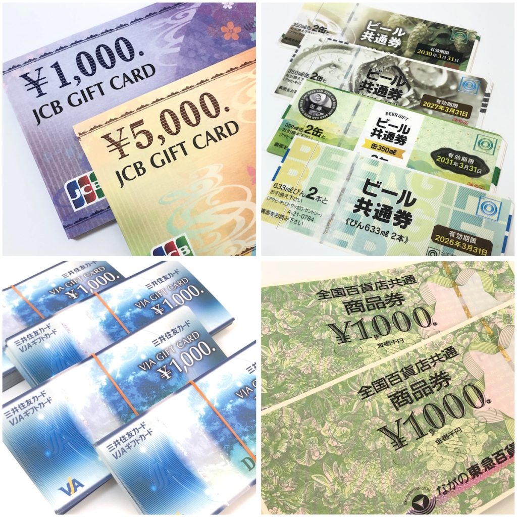 当店ではギフト券・商品券・旅行券・ビール券・株主優待券など様々な金券を1枚からお買取させていただいております。