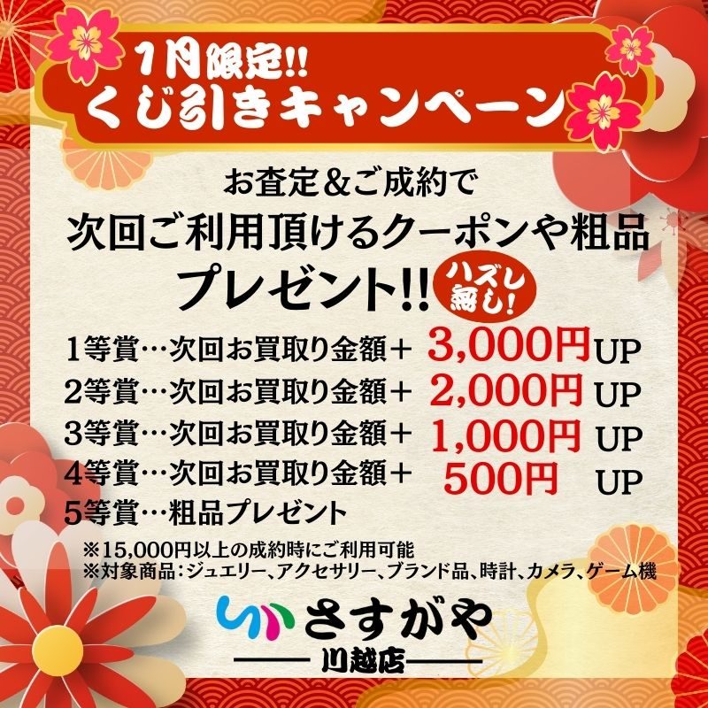 買取専門店さすがや川越店、1月限定キャンペーンのご案内です✨