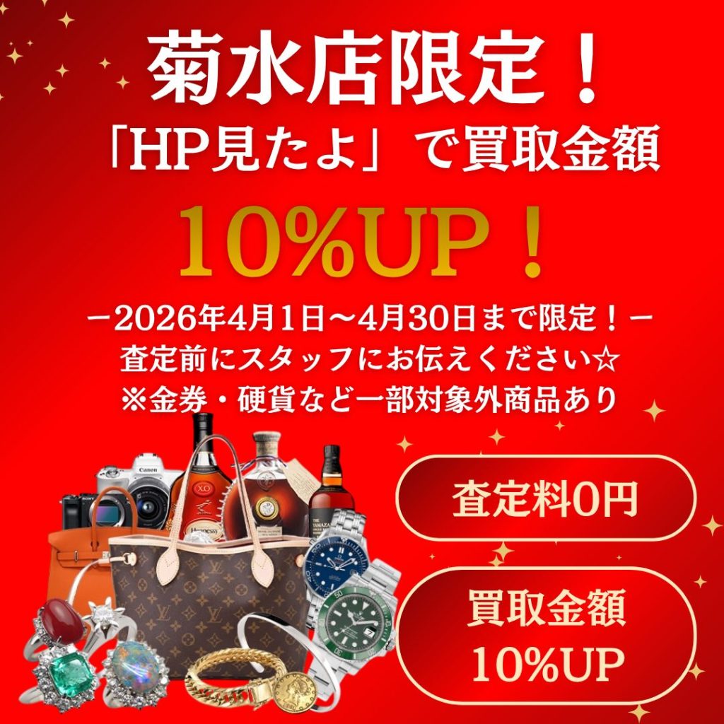 「HP見たよ!」とスタッフにお伝えいただくだけで買取金額がなんと10%UP!!